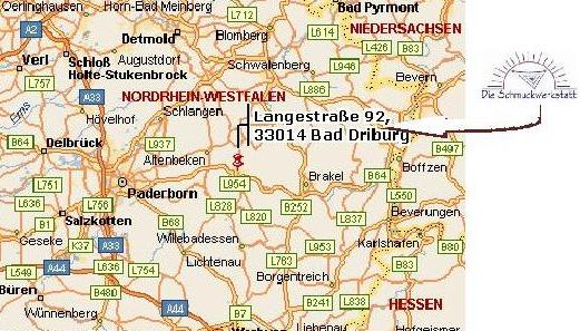 So finden Sie uns. Von nah und fern zu finden: Die Schmuckwerkstatt · Goldschmiede Lange Strasse 92, Bad Driburg